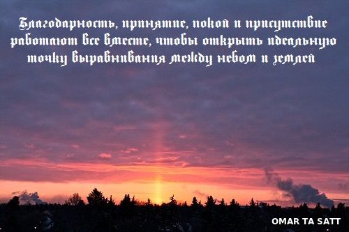 Благодарность и принятие — динамичный дуэт, ведущий к переживанию покоя. За что вы сегодня благодарны? Именно с помощью благодарности вы переходите от сопротивления к принятию, которое затем погружает вас в покой в настоящем моменте. Благодарность, принятие, покой и присутствие работают все вместе, чтобы открыть идеальную точку выравнивания между небом и землей, которая поддерживает ваше расширение и творения наивысших вибраций.